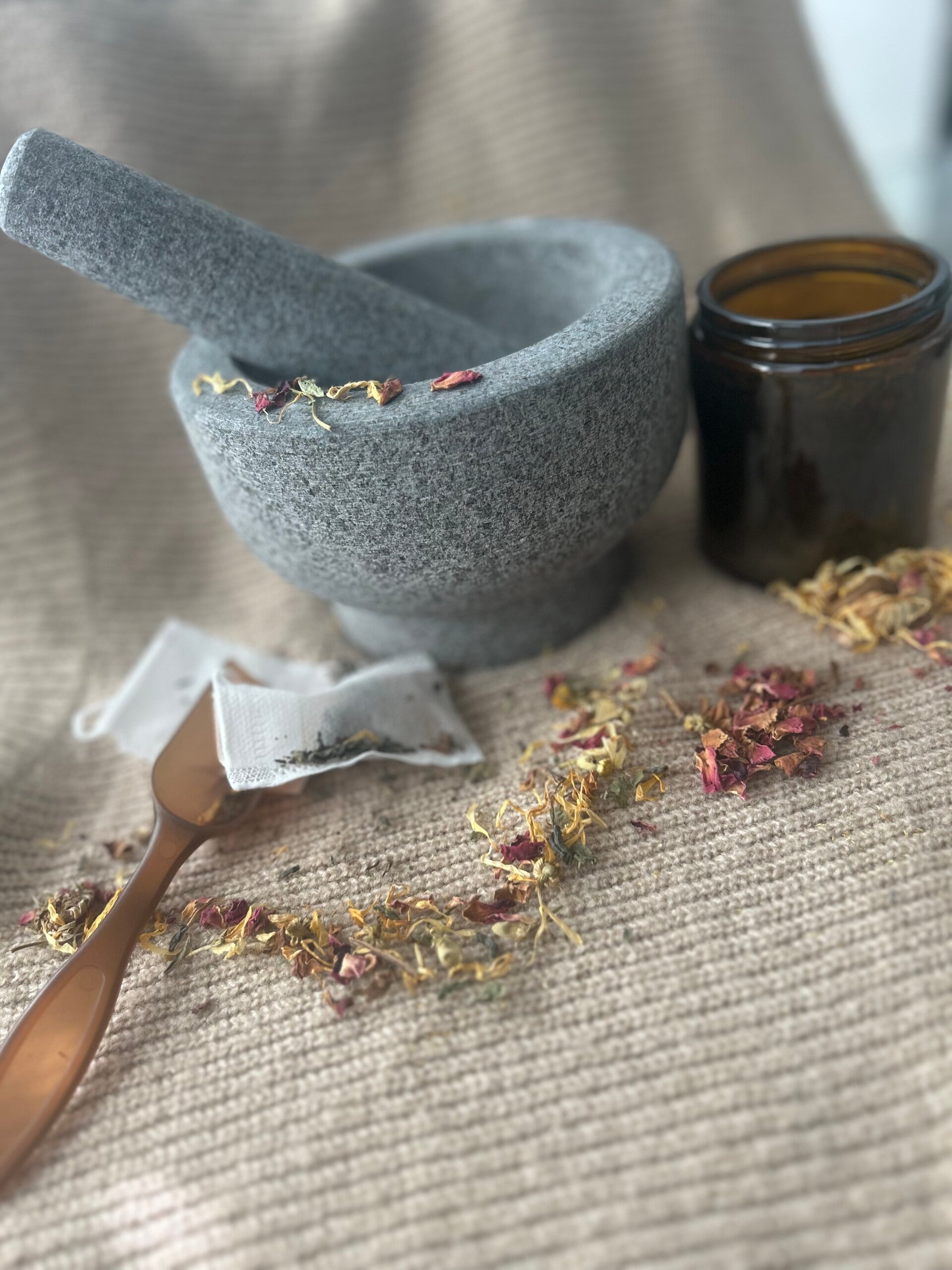 Our blends are handcrafted in small batches with natural and carefully chosen herbs. What makes our blends special is the intention behind them. Each herbal tea blend is created to renew the body and revive the spirit. We don't just create teas; we create natural remedies and rituals that bring peace, healing, and nourishment.